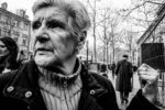 It would be funny to shoot together to see what we would get in the same places. May be next year. I’ll have to go in your country for english courses. I’d like to move again in Edinbourgh cos I really liked this city. But may be Manchester, Oxford, Cambridge and even Bristol ! 😉 We’re attracted by different things. I shot more than that but the other pics were failures. I should include them as well in the videos. Next time… The guy on the ladder, I knew that I could have something. There were his two co-workers in the background. I had my anchor subjects. I just saw this group of young people coming from my right and I was lucky to get the shot as she was exhaling smoke. It’s a whole thing but a very lucky one. I like it because of the moment and the fact that no one is overlapping with the guy on the ladder. And yeah, as the look of that lady says so well, I’m a damn freak !