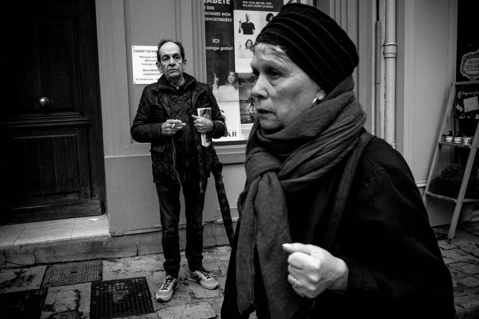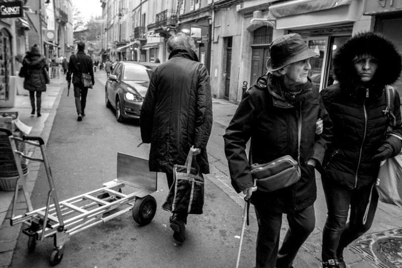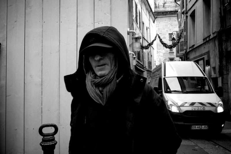 Maybe that’s why I started taking photos other than sunny days. For a long time I checked the weather before planning a Street Session to Aix-en-Provence. As soon as I saw clouds in the weather forecast, I preferred to stay at home. No need to go out if the sun was not there … Today, things have changed. I’d rather go out when the light is more “flat”. A more uniform light without contrast allows me to focus on what is happening in the street without being irretrievably attracted by the light like a firefly. I find the sun more and more distracting. On sunny days, I always do the same type of photo. Yet I know that I constantly repeat myself, but I have trouble seeing anything else. I think I have to work on that. I know for a fact that the sun is not to blame, but it is my state of mind that I need to change. It is not because there is sun that one is forced to make souless Light/Shadow photographs.