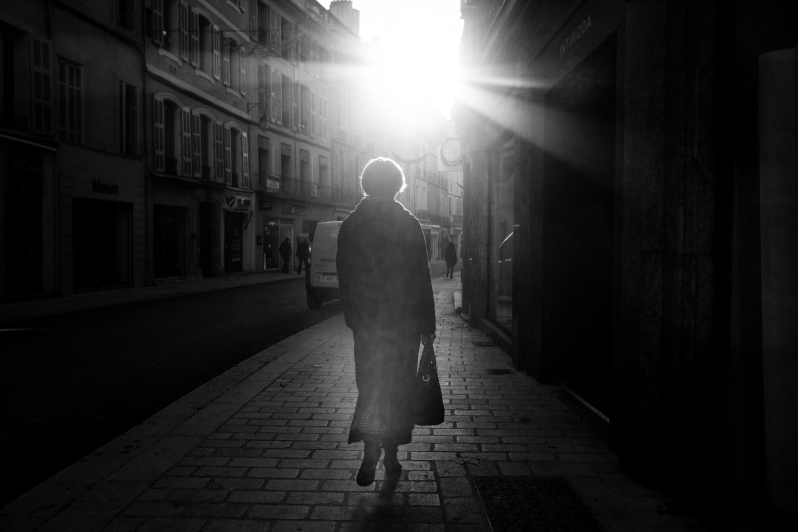 I left fairly quickly after lunch because it is the moment when the city is the most alive. The lunch break for all those who work but also for students. I posted myself at a street corner with the idea of taking photos with the sun in the face. Using the sun differently. It changes from the basic Light/Shadow … It’s another one of my favorite spots. I often have enough success here. It’s a bit like picking mushrooms. We always come back to the same places …