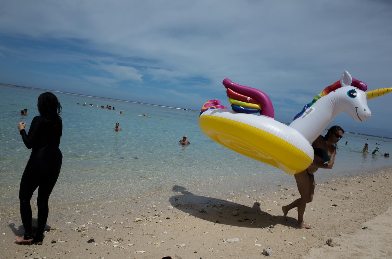 Personnellement, j’ai toujours préféré aller crapahuter dans les montagnes que de faire bronzette sur du sable. Mes enfants et ma femme sont de grands fans de la plage. Et il faut dire qu’il y a matière à s’amuser sur l’île. OK, il ne faut pas se baigner n’importe où car les requins ont la fâcheuse tendance à croquer quiconque s’aventure en dehors des lieux autorisés. D’ailleurs les requins ont changé les habitudes des gens en les concentrant plus sur le lagon qui dispose d’une barrière de corail.