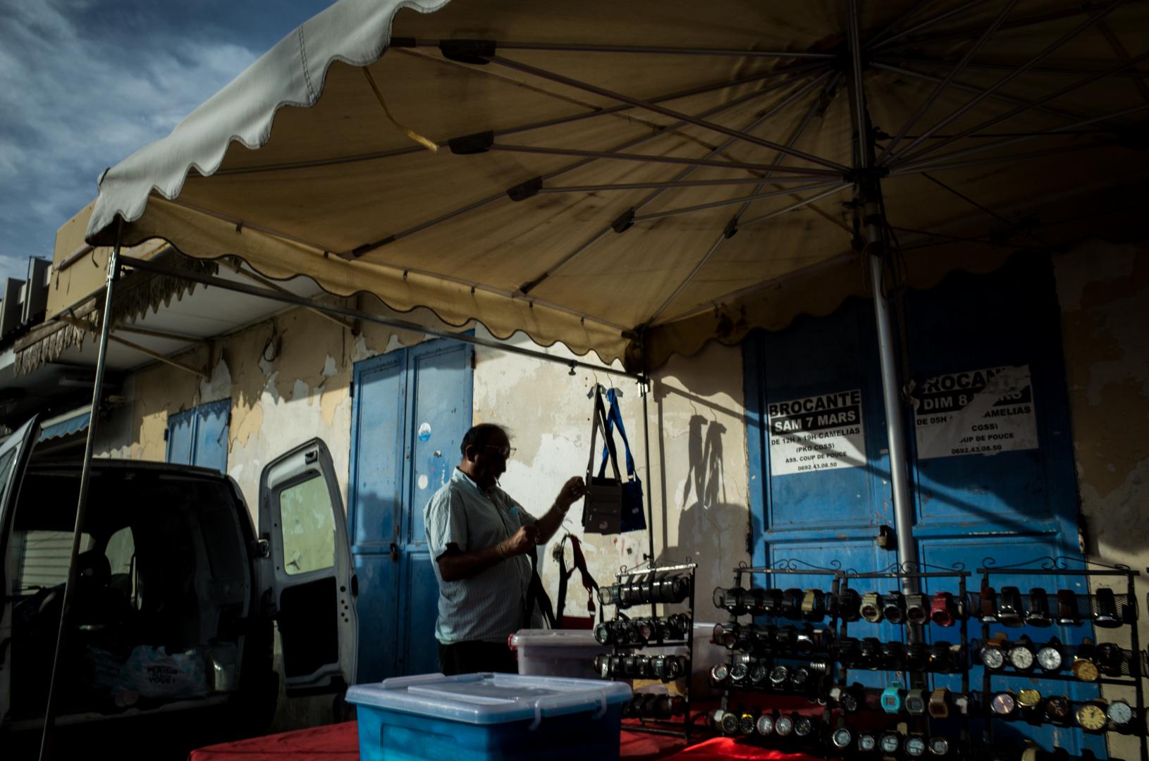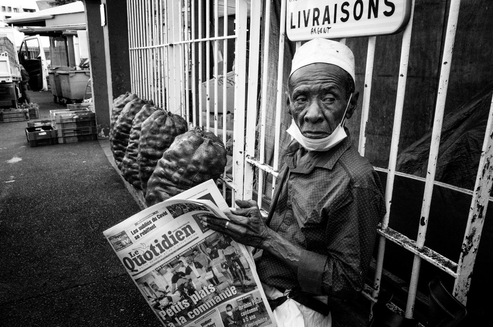 It is 7:30 am and I have already dropped the children off at school. It may seem early, but here in the tropics the sun rises earlier and the city has woken up for a long time. Besides, school starts earlier here. When I drive the kids to school, there are already many young people waiting at the bus stops. I have an appointment with the doc at 9:00 am so I have a little time to kill before going. I had already gone to make pictures in Saint-Denis after coming out of a night shift at 7:00 am, but it has been a while since I went to hang out in the streets so early. That morning, I don’t have much time in front of me. Barely an hour, but it is more than enough.