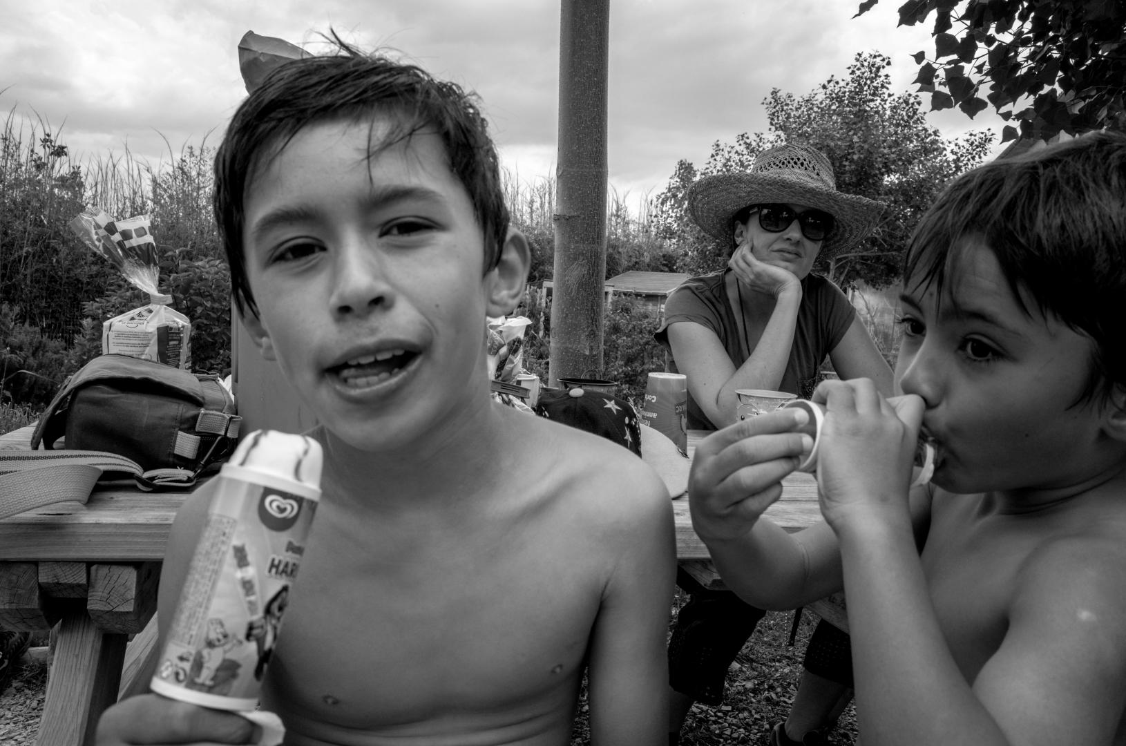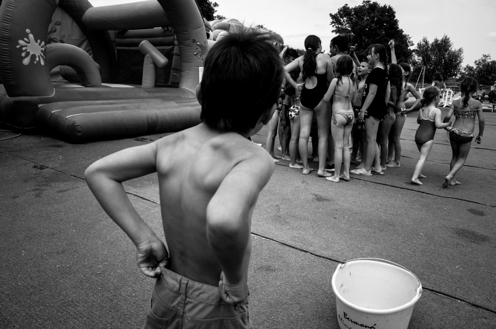 This Blog has a direct link with the previous one where I spoke to you about photographing children in the street. This is still the case here because I made many pictures of my children having fun, but also other children. Here, it was even more delicate than in the street because the little ones were in swimsuits, as at the beach. Some will say that I have no limit. I think it must be done respectfully. The thing is, it’s stronger than me. These are the situations that dictate my shot, not the fact that they are children or adults. There was action, laughter, color and tgehre were people ! When you do Street Photography, you do not wait to go out into town to do Street Photography. You do it anywhere ! This is the case for me. It’s a state of mind.