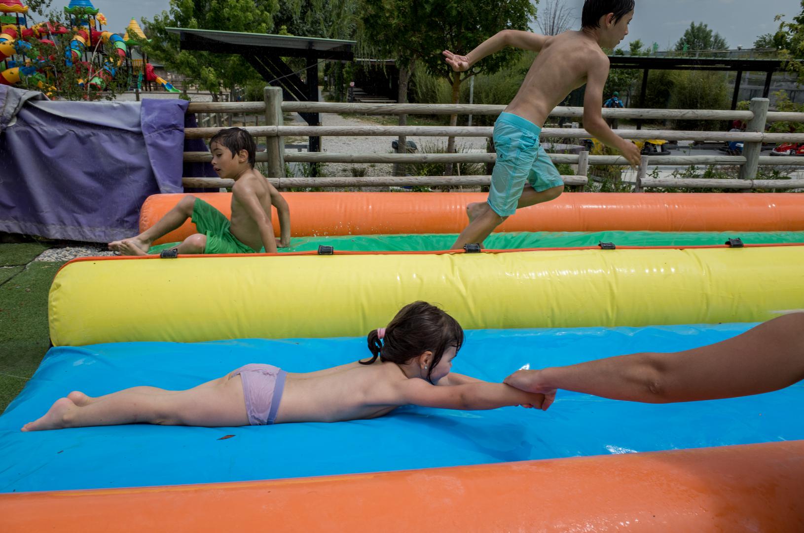 Direction Corbi Park which is 30 mins from us. This is not the first time we go there. There are some pens with birds (chickens, ducks, geese, peacocks …) but also rabbits, donkeys, goats. But what really interests children is the inflatable structures. and as the beautiful days are back, there are the water games. Unfortunately we had forgotten to take bathing suits. No worries, we sent them to have fun with their shorts while preserving their underpants and t-shirts for the return by car. They spent 4 hours having fun like crazy in the structures.