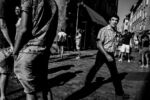 Je vous rassure tout de suite, je n’ai pas trouvé dans cette petite série réalisée, un “Glory Shot” ! Non cette série je la trouve intéressante, car elle a été réalisée à un endroit que j’aime bien et qui ce jour là était très fréquenté. Je suis resté un bon moment posté au même endroit à observer les gens passer autour de moi. J’aime quand il y a beaucoup d’agitation. Dans ces moments, la rue est un vrai bordel et j’aime essayer de réordonner un peu tout ça dans mon cadre. C’était une fin d’après-midi d’été et la lumière chaude venait caresser les peaux cuivrées des passants. J’aime l’été pour ça aussi. Ce n’est pas le côté voyeur de voir des personnes avec les jambes ou épaules dénudées, mais c’est la texture de la peau cuivrée. Je la trouve très photogénique.