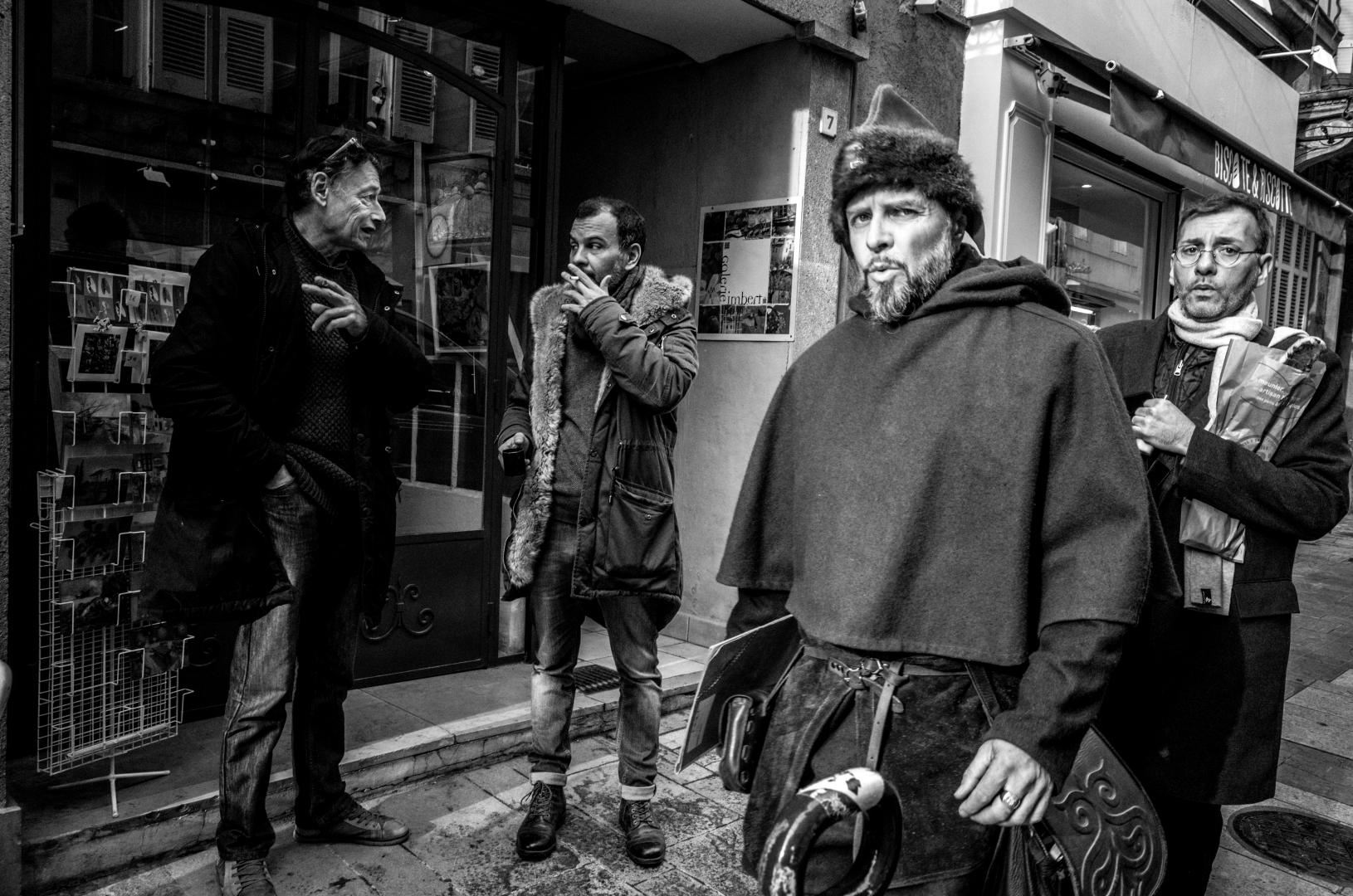 Il y a un peu plus de 3 ans quand j’ai commencé à documenter les rues d’Aix-en-Provence, je pensais terminer mes jours dans mon petit village de Jouques et je me disais que j’allais passer le prochain demi siècle à arpenter les mêmes rues d’Aix. J’ai connu à mes débuts une certaine frustration liée à la petite taille de ma ville, mais j’ai réalisé par la suite que ce qui était important en Street Photography, c’était de photographier les gens et non pas les lieux. Les possibilités sont infinies et je n’ai plus jamais ressentie une quelconque lassitude lors de mes déambulations dans Aix-en-Provence. Et pourtant je fréquentais toujours les mêmes endroits. Je ne sais pas exactement combien de photos j’ai pris, mais ça doit se compter en dizaines de milliers …